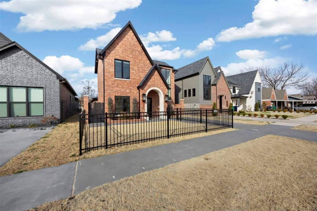 This home is elevated by luxury finishes, premium upgrades and meticulous craftsmanship throughout. The living room, which is the heart of the home, features a cast stone gas fireplace and flows to the kitchen with quartz waterfall countertops, GE Monogram appliances, ice maker, under-cabinet lighting and a walk-in serving pantry. An open dining area has a built-in for easy entertaining. The primary suite is an elevated luxury retreat with dual walk-in closets and a gorgeous primary bath, conveniently situated near a large laundry room. The spacious secondary first floor bedroom has access to a full bathroom and large closet. Completing the first floor are tall ceilings, long hallways, tons of storage, mud bench and private access to garage. Upstairs, you'll find a versatile flex space, two guest bedrooms, and a full bathroom. The residence includes a whole-home generator, spray foam insulation in roofline, foam-insulated garage walls, R-13 batt insulation to reduce sound transfer between interior rooms, a Navien tankless water heater, 2-zone system with smart thermostat and a water filtration and softening system. A low-maintenance yard features hardscaping, turf, an 8-foot privacy fence, and a RainBird irrigation system with integrated pot waterers. Additional highlights include an oversized front pivot door, wrought iron fenced-in front yard, two-car garage with epoxy flooring, an electric car charger, whole-home surge protector, Class 4 shingles and 6 wired UniFi security cameras including AI in the front and back. Managed effortlessly through an Elan whole-home automation system, the home features a multi-zone surround sound system, smart doorbell, smart Yale locks, custom blinds throughout, with remote-controlled blinds in selected areas, and an expandable smart lighting system. Ideally located near Western Avenue District, Whole Foods, Classen Curve, Trader Joes, top-tier dining options and easy highway access, this home offers a lifestyle of convenience.
