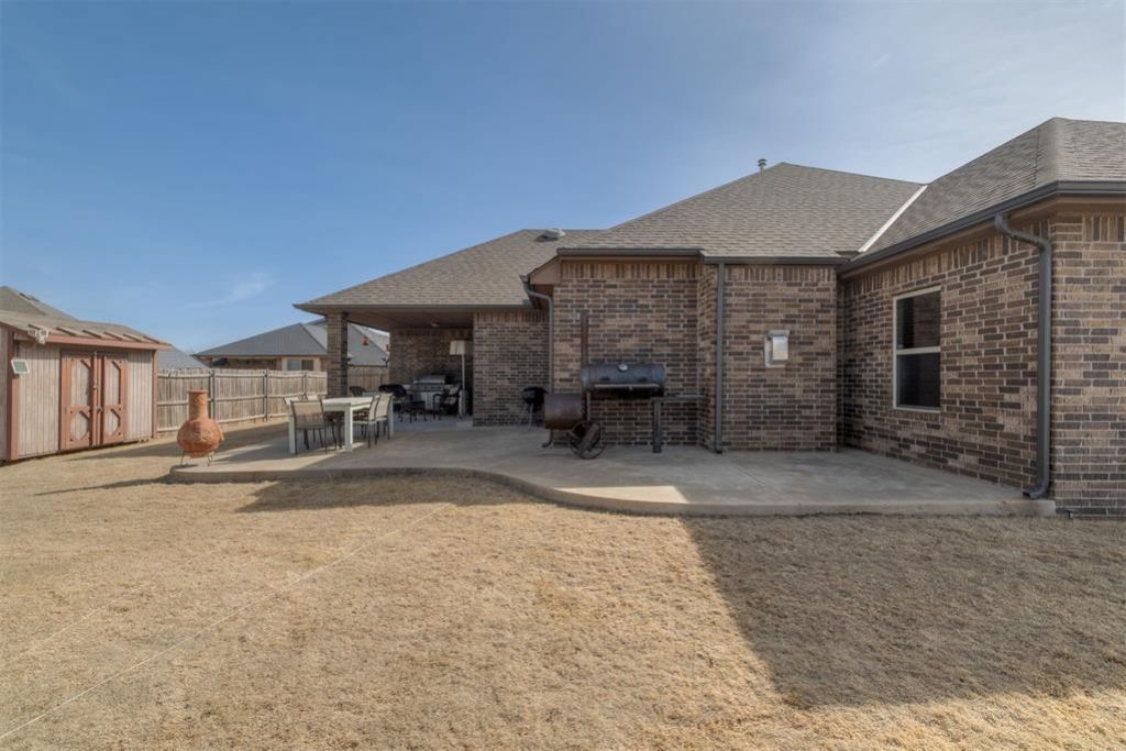 Welcome to this Beautiful, one owner, well maintained home built in 2015 offering 1,901 square feet with 4 bedrooms and 3 full bathrooms in Saddle Creek Estates. Open-concept living and dining areas connect to the kitchen. Living room features wood-look tile flooring. Kitchen includes granite countertops, ample cabinetry, and counter space.Primary suite includes a private bath with dual sinks, soaking tub, separate shower, and walk-in closet. Three additional bedrooms are well sized with convenient access to two full bathrooms.Extended covered patio provides additional outdoor living space. Three-car attached garage offers added parking and storage flexibility. Property is situated within a Yukon address and is located in the Mustang Public Schools district. Neighborhood has no homeowners association with convenient access to shopping, dining, and major roadways.