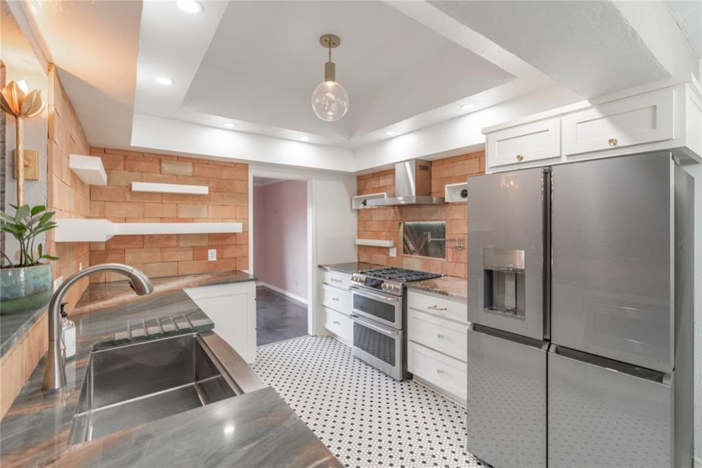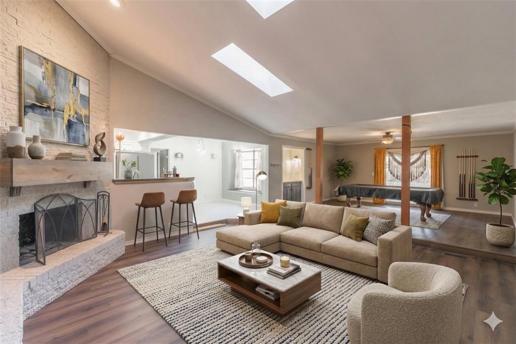 Featuring a brand-new roof replaced in 2025, this beautifully maintained 4-bedroom, 3-bathroom home in a fantastic NW OKC location offers 2,555 square feet of functional living space. The open floor plan is ideal for entertaining, featuring a formal living area off the entry and a larger main living space that boasts a cozy corner brick fireplace and a built-in wet bar perfect for a pool table or formal dining. The chef's kitchen showcases unique penny-tiled flooring, a pot filler over the gas stove, a large stainless steel farmhouse sink, and a casual dining nook. The spacious primary suite is a true spa-like retreat with a large soaker tub, dual vanities, hexagon tiled flooring, and a floor-to-ceiling tiled walk-in shower leading to a large closet. Outside, enjoy the large, fenced backyard with an open deck, and rest easy knowing the property is move-in ready.