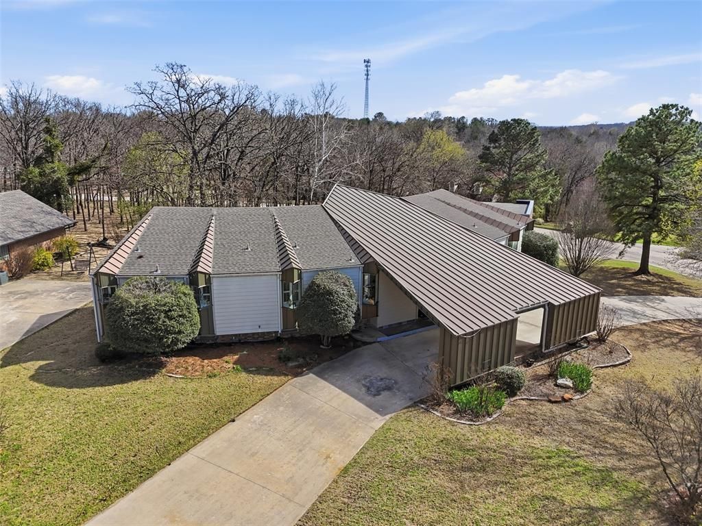 SELLER IS OFFERING $2500 TOWARDS BUYERS CHOICE OF CLOSING COST/RATE BUY-DOWN OPTIONS. If you're dreaming of a unique home,with stunning architectural angles & curves, come take a tour of this 'contemporary - art deco home in Ada Oklahoma! This unique tri-level home is a peaceful oasis perched on a beautiful curved, corner lot located in the highly coveted Oaks Addition. Step inside to the mid-level, grand entrance and you are welcomed with a massive view, boasting with character and design at first glance. Natural lighting from the many glass doors & tall windows is a special feature of this beauty. The ceiling height and towering beams show off the beauty of its design, as you descend into the main living area. This home offers 4 bedrooms, 3 full bathrooms, a spacious den area, formal living room, kitchen with island bar area, a roomy dining room, an abundance of closets & storage throughout the home and a safe room! The enormous primary suite features a serene setting with large sitting room, with a step-out balcony, overlooking the swimming pool. That's before you even get to the private cozy, sleeping quarters and spacious master bath. In the formal living area, you will find 2 sets of glass doorways leading outdoors that open up to the beautiful in-ground swimming pool. This huge backyard with plenty of patio space and pergola are ready for your entertainment and party times. The curved porte cochere offers protected parking for you and your guests and has an attached 2 car garage. The property's attention to detail and design makes it a jewel of a home. It's an absolute 'have to see home!