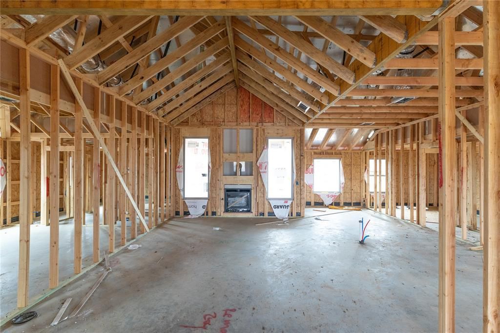 This Hummingbird floor plan features 2,025 Sqft of total living space, which includes 1,800 Sqft of indoor space and 225 Sqft of outdoor living. There is a 565 Sqft, three car garage with an in-ground storm shelter installed. This home offers 4 bedrooms, 2 bathrooms, 2 covered patios, and a large utility room. The great room welcomes a breathtaking cathedral ceiling with a cathedral chandelier, a gas fireplace with our stacked stone surround detailing, large windows, rocker switches throughout, wood-look tile, and Cat6 wiring. The high-end kitchen has 3 CM countertops, custom-built cabinets to the ceiling with cabinet hardware installed throughout and under cabinet lighting, stainless steel appliances, a 5-burner cooktop, vogue tile backsplash, stellar pendant lighting, a corner walk-in pantry, and a large center island equipped with a trash can pullout, sink, and dishwasher. The elegant primary suite has a sloped ceiling detail with a ceiling fan, windows, Cat6 wiring, and our cozy carpet finish. The attached spa-like bath includes a dual sink vanity with framed mirrors, TWO spacious walk-in closets, a roomy European walk-in shower, and a free-standing tub. Secondary bedrooms feature high ceilings with ceiling fans, windows, spacious closets, and carpeted flooring. The covered back patio offers a wood burning fireplace, a TV hookup, and a gas line for your grill. Other amenities include Healthy Home Technology, a fresh air ventilation system, a tankless water heater, R-44 insulation, and more!
