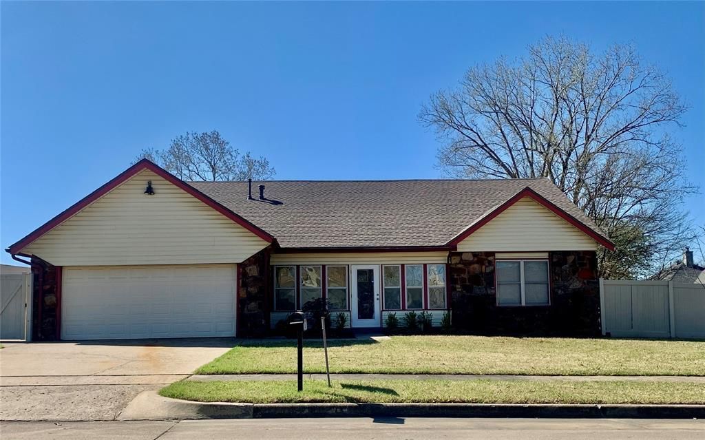 Back on the market at no fault to the seller with a new price!! Get ready to fall in love with this well maintained, move-in ready home that mixes vintage cool with that updated new feel, tucked away in (no HOA) Oak Creek South neighborhood. This One Owner, 1.5 story home sits on a .25 acre corner lot with a 2026 NEW roof, new interior paint, Granite countertops throughout, new light fixtures, a security system, a spacious backyard with a 6ft vinyl privacy fence, a outbuilding, a double gate access & extra parking for a boat/trailer/RV/etc. The moment you step inside the enclosed front porch/sunroom into the home, you'll notice the welcoming stone fireplace with an insert, a wooden bookcase & a staircase going upstairs. Conveniently located downstairs is the 1/2 bath for guests, the dining area & kitchen featuring a box window looking out to the backyard, granite countertops, a flat cooktop stove, built-in wall oven, microwave, disposal & dishwasher. The utility room adjoins the kitchen & leads to the 2 car garage. Also the primary bedroom is located downstairs with 2 walk-in closets, granite vanity & shower tub combo. Going upstairs is a loft-like study which looks down to the living room below, the 4th bedroom can offer endless versatility, extra spacious, it can be used as a media room, recreational space, guest suite, office or any combination that fits your lifestyle. This location has great highway & turnpike access making it convenient for everyday travel. Located close to schools, shopping, dining & everything Broken Arrow has to offer. Don't miss out on this great opportunity.