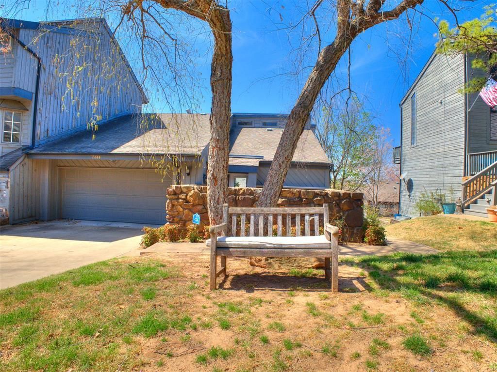 Discover life at Raintree Estates, a gated condominium community in Tulsa. This beautifully updated home features two bedrooms, two and a half baths, plus a dedicated study. Inside, you'll find soaring ceilings, abundant natural light from stunning windows, and attractive flooring throughout. The kitchen is equipped with stainless steel appliances and set apart. The dining area opens up to the spacious living area that is anchored by a cozy fireplace.The generous sized primary suite includes a private en-suite bath and a walk-in closet. Additional highlights include a two-car garage and a large private patio balcony just off the kitchen, overlooking the picturesque surroundings.The HOA provides shared exterior building insurance (50/50) and handles exterior maintenance, making for easy living. Residents also enjoy access to community amenities such as a pool, recreation center, and pickleball court.Ideally located near Tulsa's top shopping, dining, medical facilities, and entertainment, this home combines comfort, convenience, and security. Schedule your private showing today and experience all that 7444 S Winston and Raintree Estates has to offer. Broker is part owner in property.
