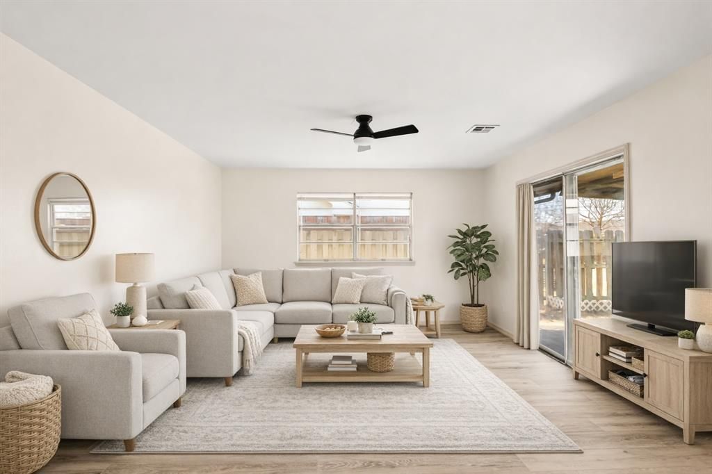 Fresh updates, a functional layout, and a backyard you'll actually use, this one checks all the boxes.Step inside to fresh paint, brand new flooring, and updated LED lighting that gives the entire home a clean, modern feel. The kitchen has been thoughtfully upgraded with brand new butcher block countertops, updated appliances, and new sinks, making it both stylish and practical for everyday living.The spacious floor plan offers a great flow with comfortable living areas and room to spread out, whether you're hosting or just enjoying a quiet night in.Outside, you'll find a huge backyard complete with a covered patio and storage shed, perfect for entertaining, hobbies, or simply having space to breathe.Major updates have already been taken care of, including a roof replaced in 2023, and all major components are in great working order, giving you peace of mind from day one. To top it off, the seller is even offering a home warranty.Move-in ready, low maintenance, and full of upgrades, this home is ready for its next owner.All we need is you.